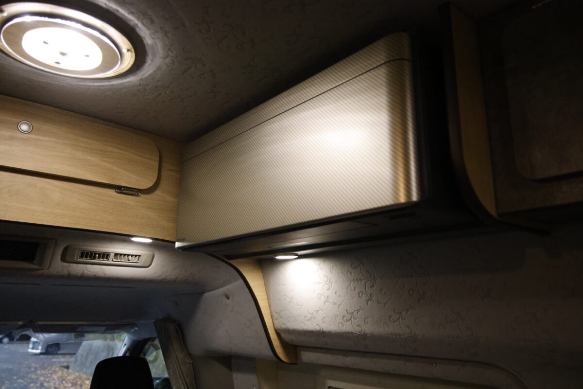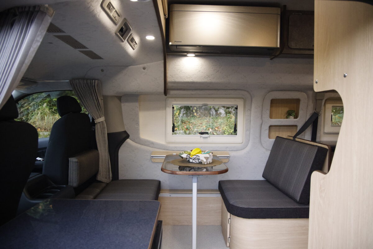 もちろん、薄型低電力の家庭用エアコンや冷蔵庫、調理に便利な2口カセットコンロ、大容量リチウムイオンバッテリー等々、最新の快適装備は全て標準装備。キャブコン並みの広さと装備にバンコンならではの走行性能や取り回しの容易さが加わった。