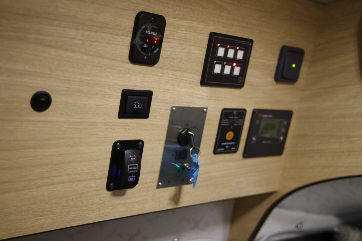 その広々とした室内を最大限活かすために薄型家庭用エアコンやリチウムイオンバッテリーシステムを標準装備。